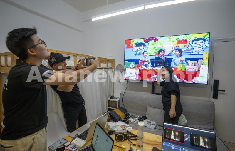 图片说明:2022年11月11日,海南省文昌市龙楼镇,张敬宜(右)看到妈妈出现在《我们的太空》节目上时,拉着小伙伴帮她们母女合影。作为一名航天家属,2020年第一次看到火箭发射后,两年间张敬宜跑过大半个中国,拍摄火箭发射21场,通过摄影的方式定格中国火箭发射的瞬间。