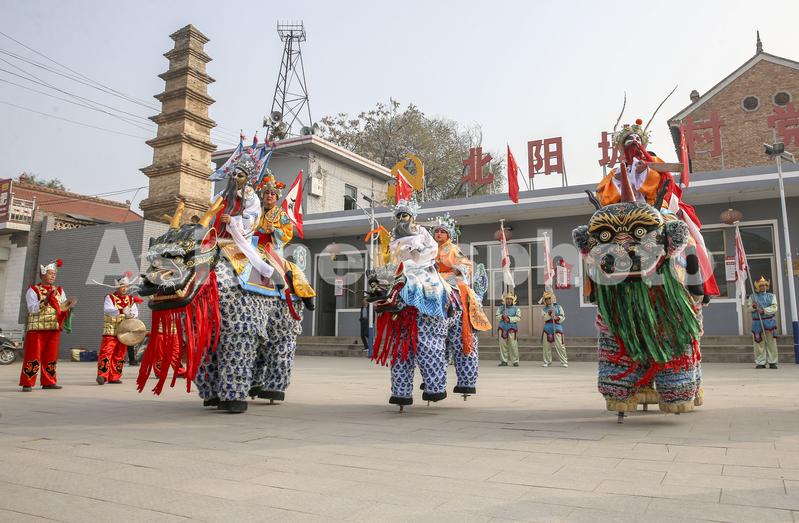 图片说明:2022年11月19日,山西省运城市稷山县国家级非物质文化遗产高跷走兽正在表演。