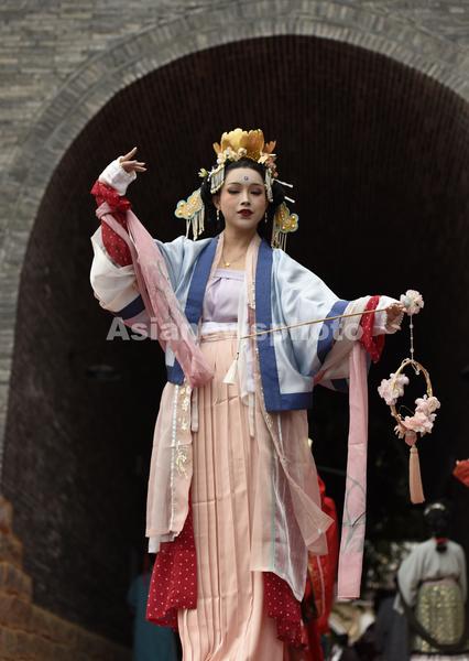 2022年11月19日, 广西南宁一汉服团队在老南宁的三街两巷举办邀您一起参与汉服出行日活动。众多汉服爱好者聚集在仓西门及三街两巷,举行汉服巡游、汉服朝代秀、汉婚秀、甲胄秀等活动,与市民一起感受传统服饰的魅力。