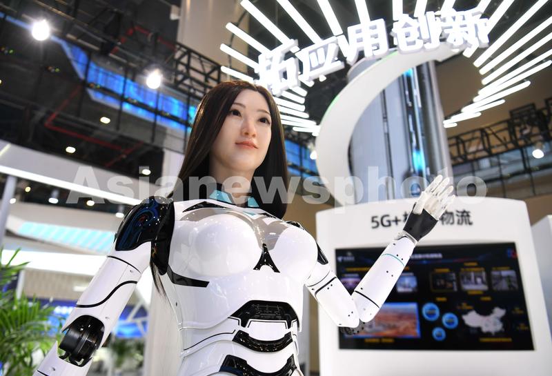 在中国电信展厅,上海清芸机器人有限公司的高仿人机器人,能够进行智能的语音交互,可以根据编程进行客户引导、文案宣传、娱乐表演等模拟真人的行为和举止。