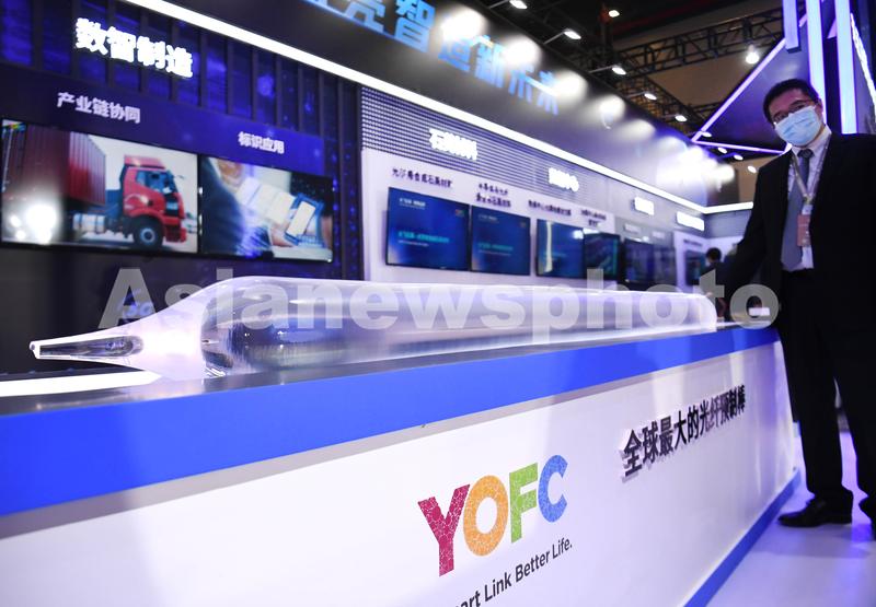 长飞光纤光缆股份有限公司展示全球最大的光纤预制棒。