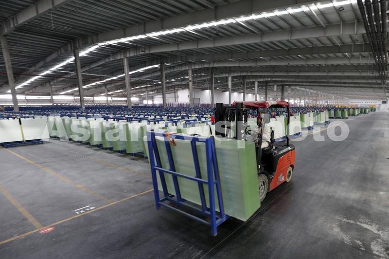 11月22日,在湖南省资兴经济开发区的旗滨光伏光电玻璃有限公司,工人在光伏组件高透基板材料生产车间忙碌。