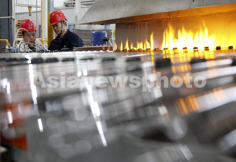 11月22日,在湖南省资兴经济开发区的旗滨医药材料科技有限公司,工人在中性硼硅药用玻璃素管生产线上作业。