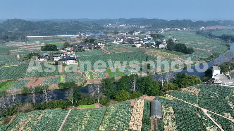 图片说明:2022年11月25日,四川省内江市东兴区石子镇旱地坝村千亩蔬菜基地,莲花白大量成熟待售(无人机照片)。