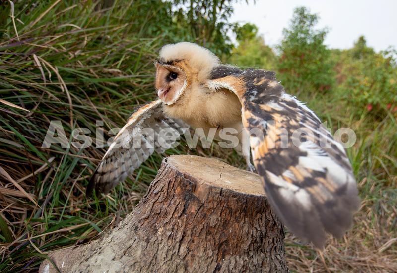 图片说明:2022年11月16日,在四川省成都市双流区永安镇付家坝社区罗家山拍摄的羽毛渐丰、萌态可掬的猴面鹰幼鸟。