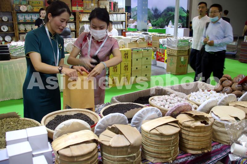 2022年8月12日,观众在第18届苏州国际茶业博览会上参观和选购茶叶。王建康 摄