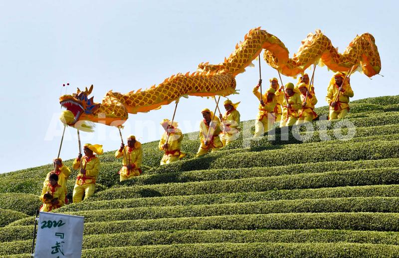 2022年3月12日,浙江省金华市武义县,茶农在开茶节上舞龙。