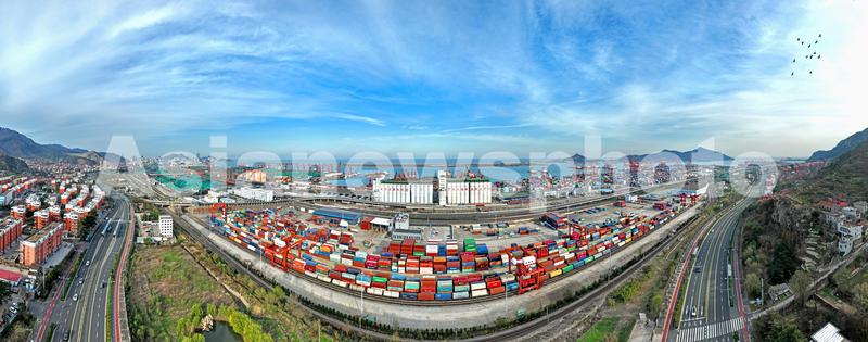 2022年12月1日,位于新亚欧大陆桥东端起点处的中哈连云港物流合作基地一片繁忙景象(无人机照片)。