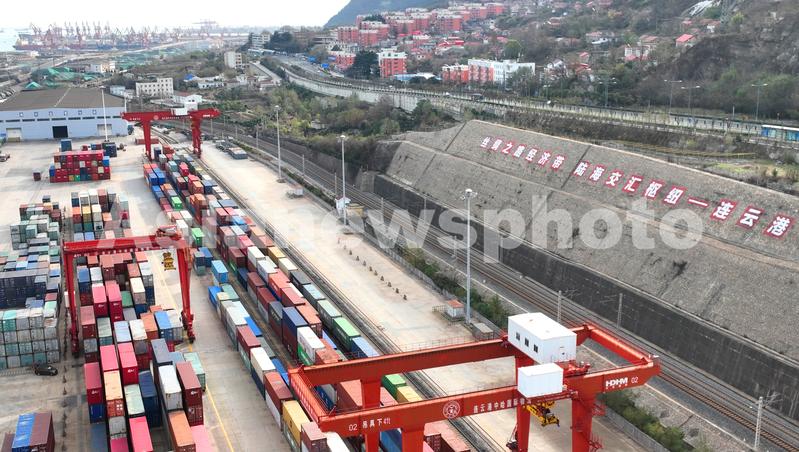 2022年12月1日,位于新亚欧大陆桥东端起点处的中哈连云港物流合作基地一片繁忙景象(无人机照片)。