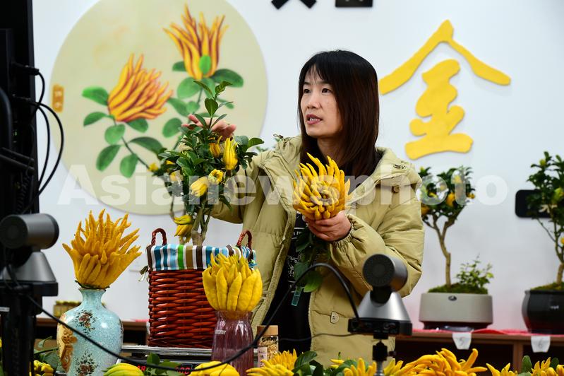 2022年11月30日,浙江省金华市金东区赤松镇北山口村的文旅会客厅直播间里或佛手种植大户大棚内,网络主播正在直播带货,让佛手搭上互联网的快车,村民们靠“金佛手”走上致富路。