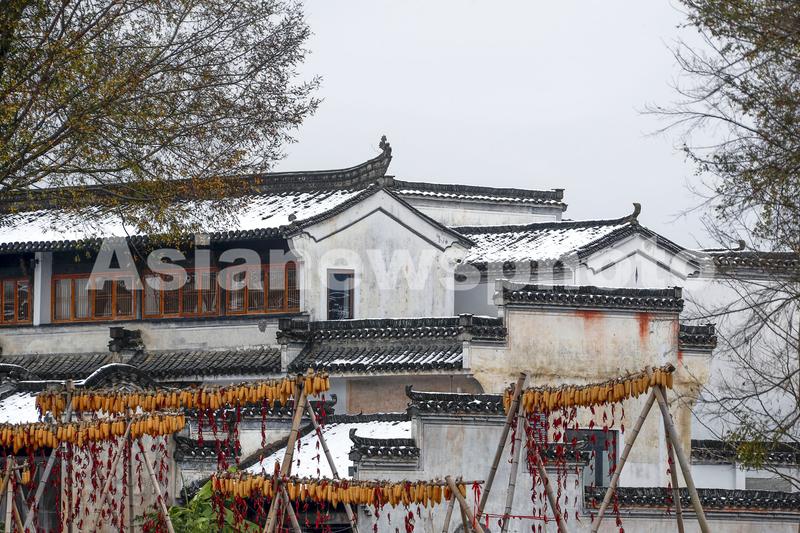 2022年12月2日,安徽省黄山市徽州区呈坎古村雪后景美如画。