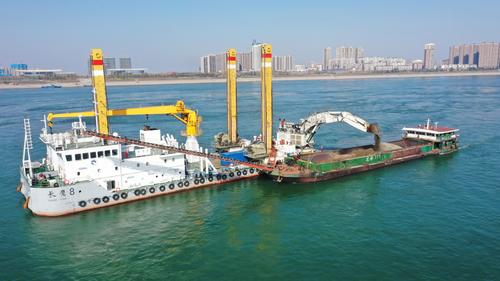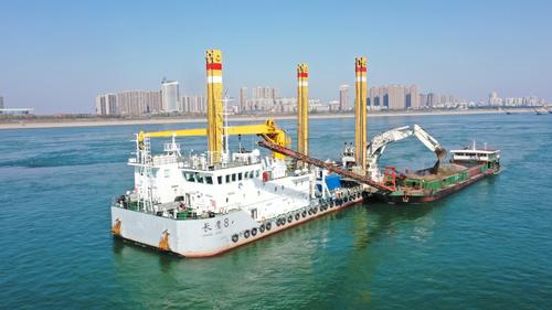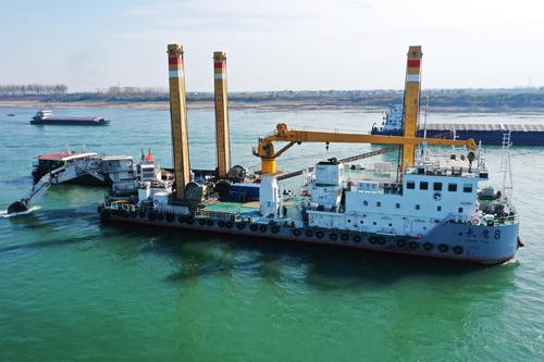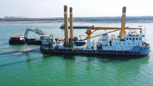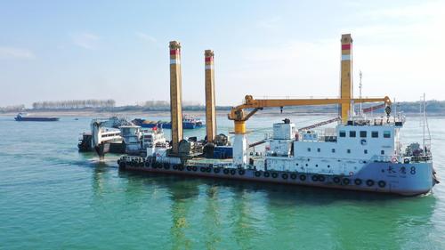 图片说明:2022年12月2日,长江宜昌航道工程局“长鹰8”号挖泥船正在枝江水道疏浚作业,这是我国自主研发建造的最大铲斗挖泥船。