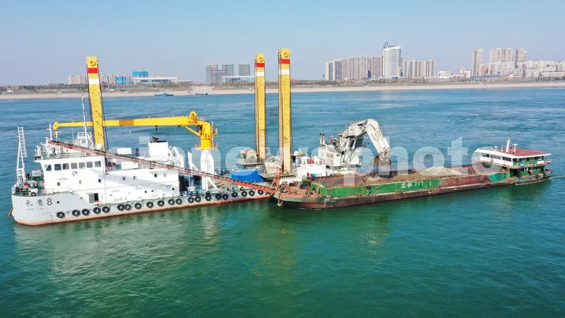 图片说明:2022年12月2日,长江宜昌航道工程局“长鹰8”号挖泥船正在枝江水道疏浚作业,这是我国自主研发建造的最大铲斗挖泥船。