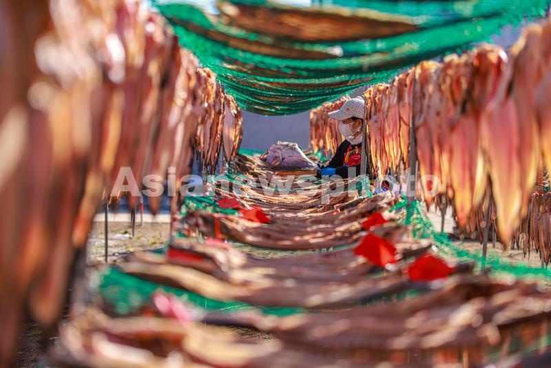 入冬之后,晾晒鱼干是胶东半岛渔家的传统习俗。2022年12月2日,在山东省荣成市石岛管理区王连街道北桥头村一处渔家小院,农户们抓紧时间晾晒鱼干,供应市场。荣成渔家利用传统工艺制作的“回水鱼干”有上千年历史,被列为省级非物质文化遗产名录。当地人用海水将鱼冲洗干净,挂在架子上晾晒,具有浓郁的地方特色和海洋风味。经过特殊的腌、晾、冲洗、捂制等环节,晒出的鱼干咸香美味,供不应求。近年来,当地渔民通过网络直播、带货、开网店等渠道,将特色鱼干产品远销各地,为渔民增收提供更多途径。