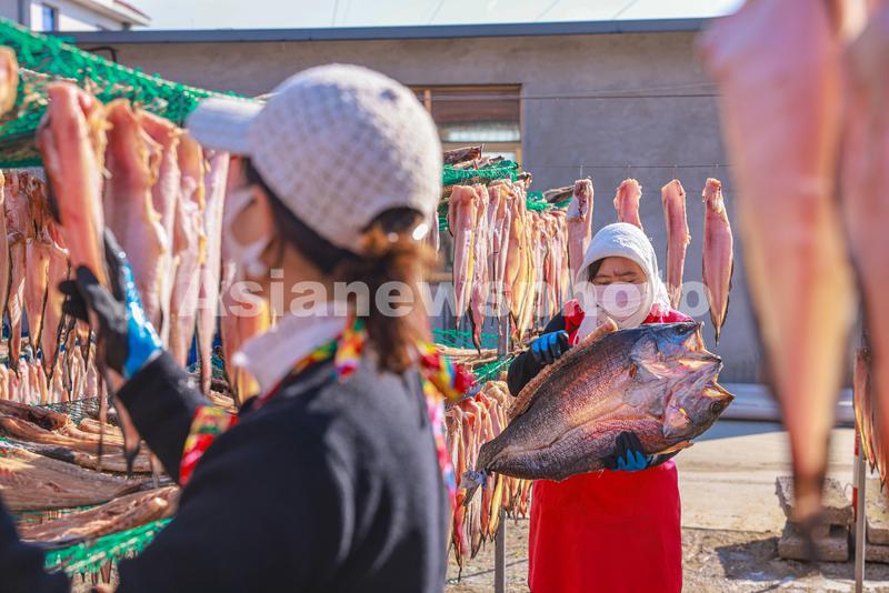 入冬之后,晾晒鱼干是胶东半岛渔家的传统习俗。2022年12月2日,在山东省荣成市石岛管理区王连街道北桥头村一处渔家小院,农户们抓紧时间晾晒鱼干,供应市场。荣成渔家利用传统工艺制作的“回水鱼干”有上千年历史,被列为省级非物质文化遗产名录。当地人用海水将鱼冲洗干净,挂在架子上晾晒,具有浓郁的地方特色和海洋风味。经过特殊的腌、晾、冲洗、捂制等环节,晒出的鱼干咸香美味,供不应求。近年来,当地渔民通过网络直播、带货、开网店等渠道,将特色鱼干产品远销各地,为渔民增收提供更多途径。