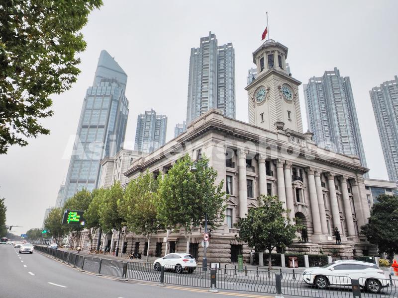 图片说明:12月6日,湖北省武汉市有着百年历史的武汉关,降下国旗沉痛悼念敬爱的江泽民同志。