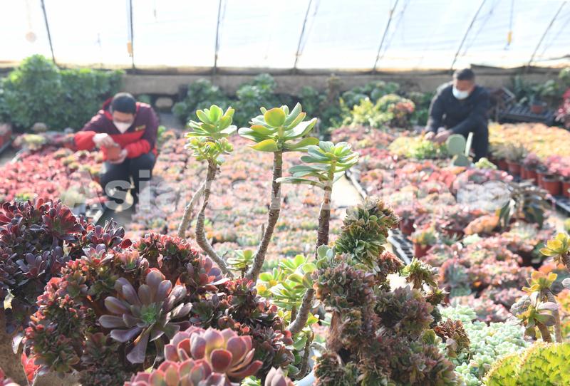 图片说明:2022年12月7日,在河北省石家庄新乐市坚固村温室大棚,农民正在进行劳作。