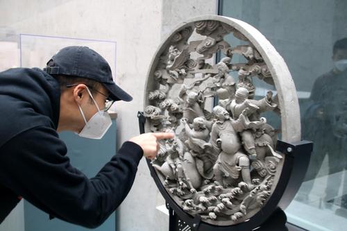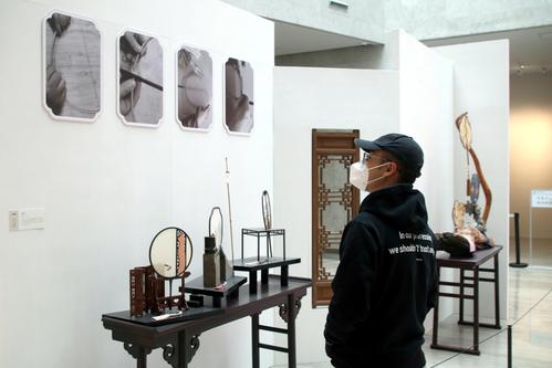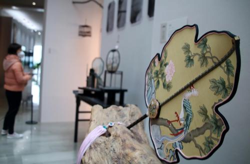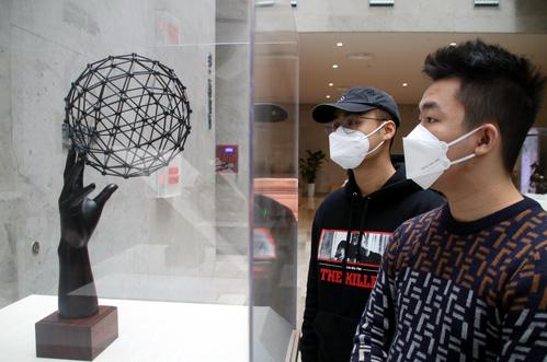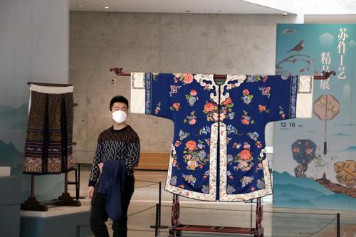 图片说明:2022年12月7日,观众在“苏作工艺精品展”上参观。