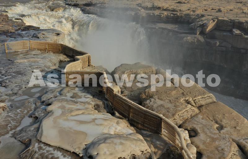 2022年12月7日,在山西吉县黄河壶口瀑布拍摄的冰挂彩虹景观。大雪时节,受持续降温天气影响,位于山西吉县和陕西宜川县交界的黄河壶口瀑布出现冰挂景观,层层叠叠的冰挂与瀑布上空飞舞的彩虹交相辉映,景色壮美。