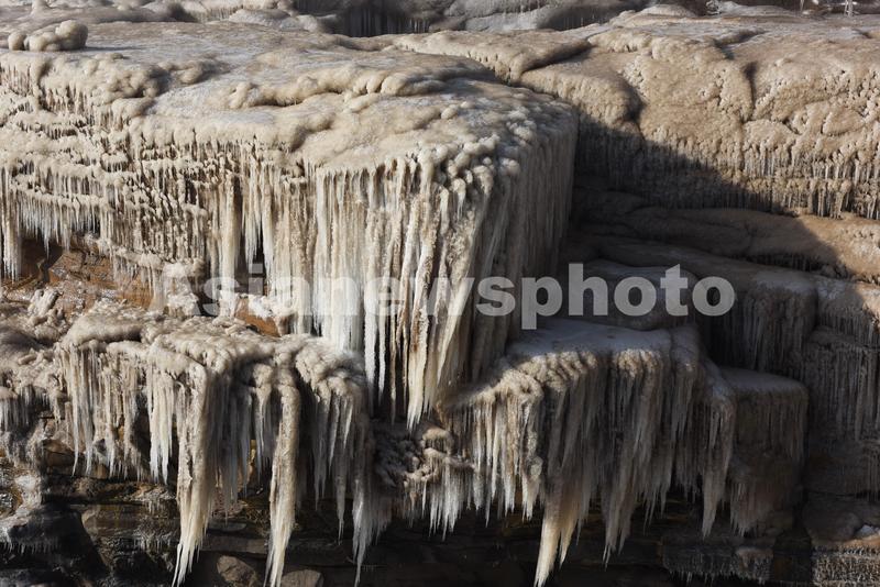 2022年12月7日,在山西吉县黄河壶口瀑布拍摄的冰挂彩虹景观。大雪时节,受持续降温天气影响,位于山西吉县和陕西宜川县交界的黄河壶口瀑布出现冰挂景观,层层叠叠的冰挂与瀑布上空飞舞的彩虹交相辉映,景色壮美。