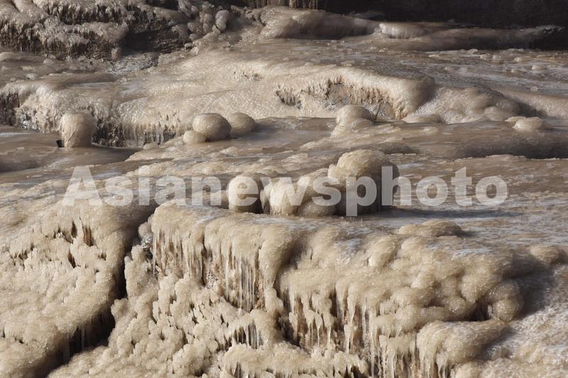 2022年12月7日,在山西吉县黄河壶口瀑布拍摄的冰挂彩虹景观。大雪时节,受持续降温天气影响,位于山西吉县和陕西宜川县交界的黄河壶口瀑布出现冰挂景观,层层叠叠的冰挂与瀑布上空飞舞的彩虹交相辉映,景色壮美。