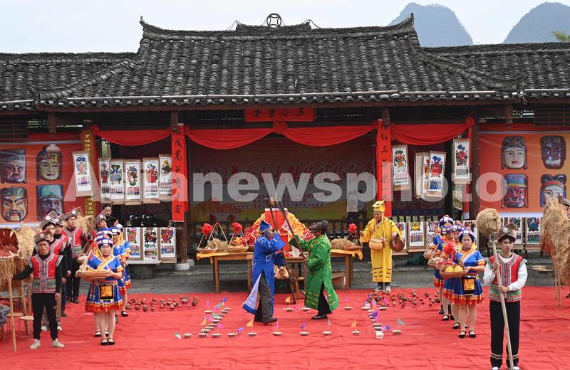 图片说明:12月10日,在广西河池市罗城仫佬族自治县东门镇石围古村,喜乐愿祈福活动现场。
