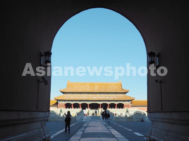 2022年12月11日,北京迎来蓝天白云好天气,故宫博物院内游客多。