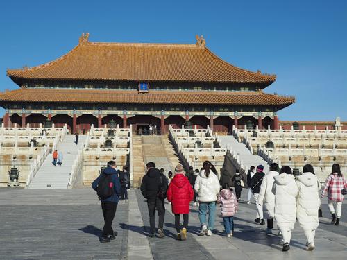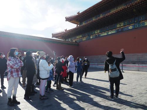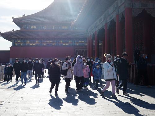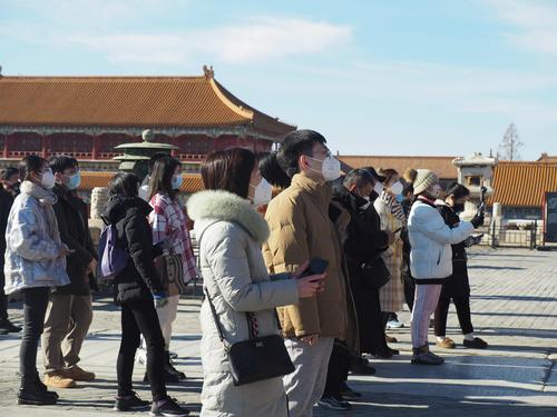 2022年12月11日,故宫博物院内,游客在参观游览。