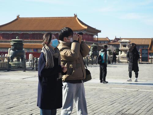 北京迎蓝天 故宫游客多