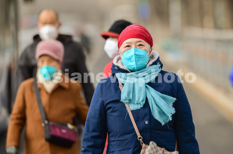 2022年12月12日,行人冒着沙尘在呼和浩特街头出行。