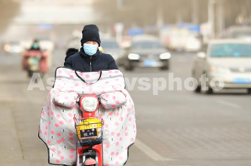 2022年12月12日,行人冒着沙尘在呼和浩特街头出行。