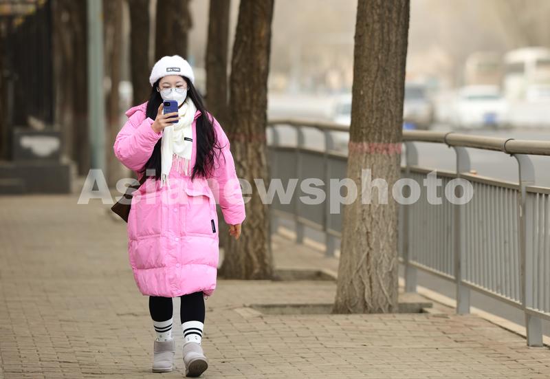 2022年12月12日,行人冒着沙尘在呼和浩特街头出行。