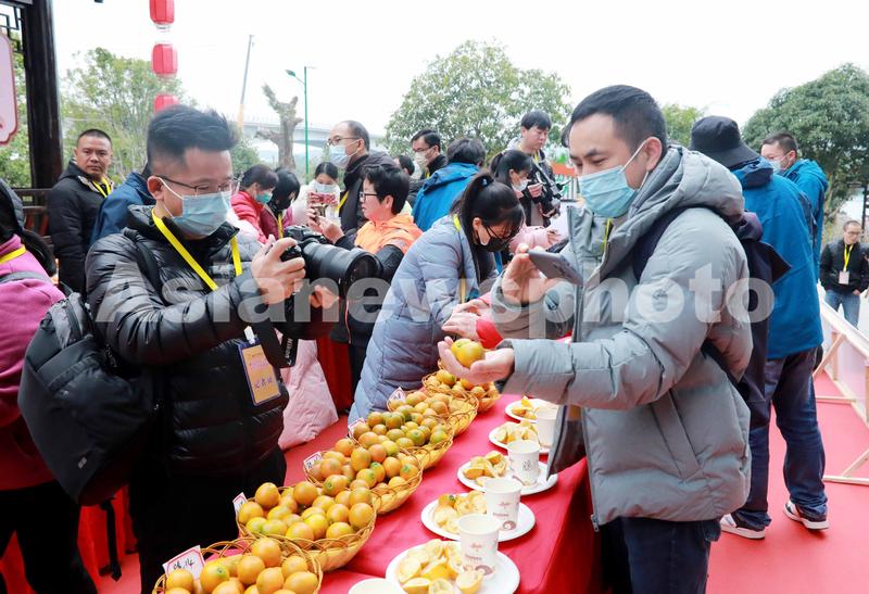 图片说明:12月9日,在广西柳州市融安县举办的第十三届金桔文化旅游节“我是融安金桔王”擂台赛上,媒体记者在拍摄参赛金桔。