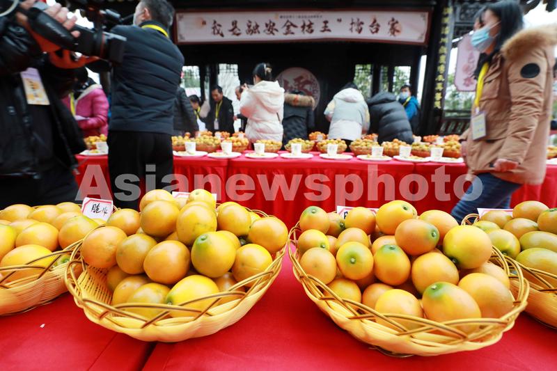 图片说明:12月9日,在广西柳州市融安县举办的第十三届金桔文化旅游节“我是融安金桔王”擂台赛上拍摄的参赛金桔样品。