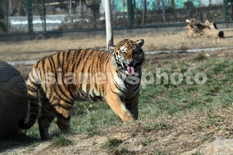 12月12日,河南省沁阳市和生森林动物乐园大型猫科动物散养区,一只东北虎在悠闲散步。