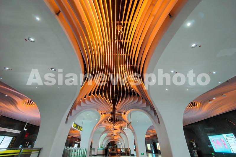 图片说明:2022年12月14日,上海,地铁14号线豫园站室内空间华丽似宫殿,被誉为上海“最美地铁站”。