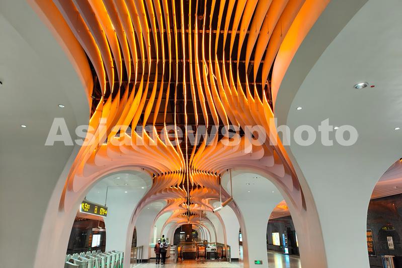 图片说明:2022年12月14日,上海,地铁14号线豫园站室内空间华丽似宫殿,被誉为上海“最美地铁站”。