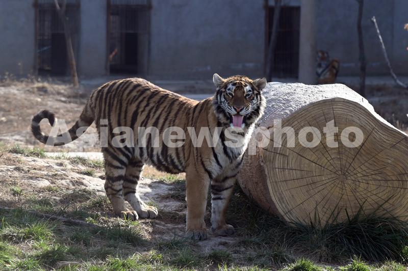 12月12日,河南省沁阳市和生森林动物乐园大型猫科动物散养区,一只东北虎憨态可掬。