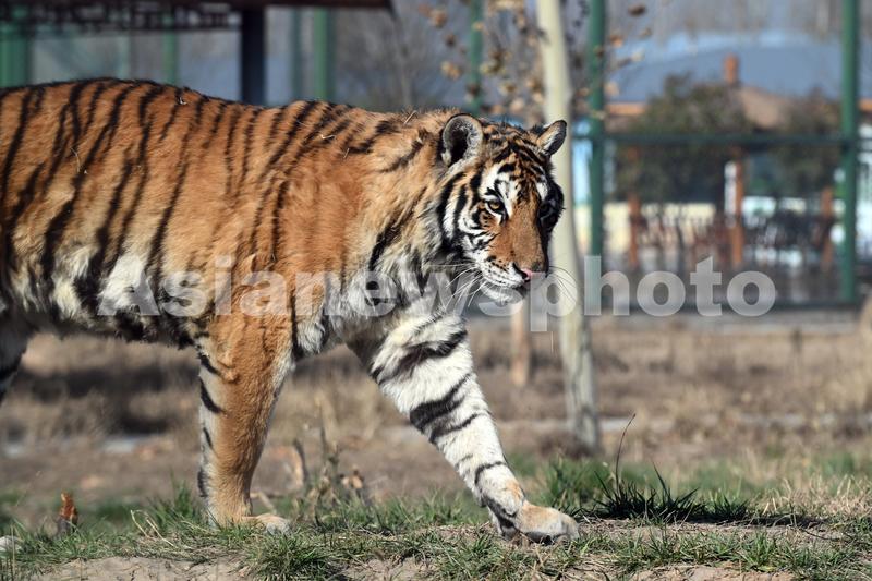 12月12日,河南省沁阳市和生森林动物乐园大型猫科动物散养区,一只东北虎在优雅踱步。