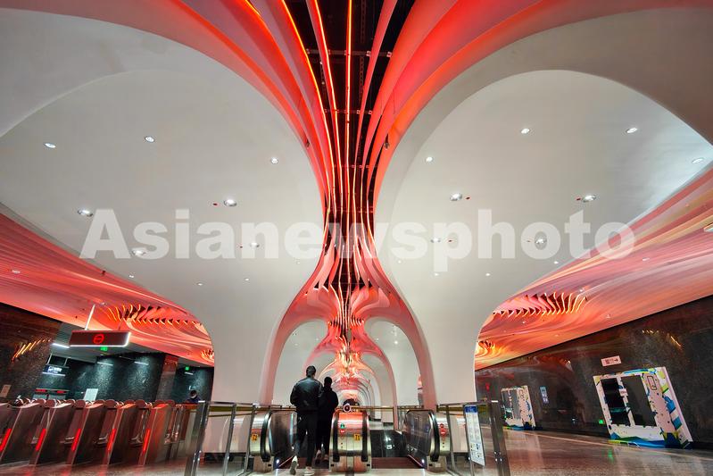 图片说明:2022年12月14日,上海,地铁14号线豫园站室内空间华丽似宫殿,被誉为上海“最美地铁站”。