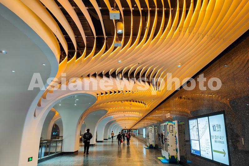 图片说明:2022年12月14日,上海,地铁14号线豫园站室内空间华丽似宫殿,被誉为上海“最美地铁站”。