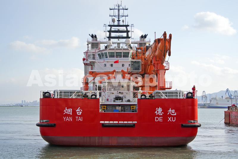 “德旭”轮隶属于交通运输部烟台打捞局,总长90.9米,型宽20米,配备DP2动力定位系统、两套200m³/h溢油回收能力的收油机以及起重能力100吨、作业水深1000米的深水起重机,具有3000m³的溢油存储能力和一级对外消防能力,可有效实施海上溢油回收、沉船存油抽取、难船存油过驳、应急抢险打捞等作业。
