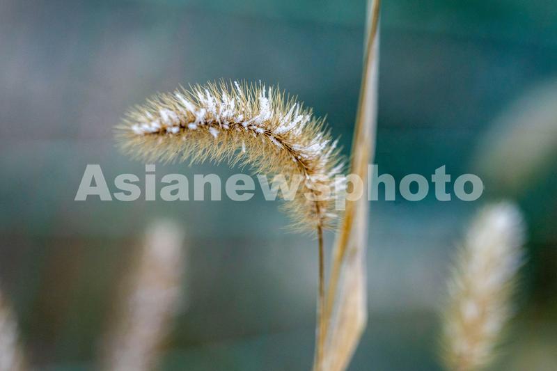 图片说明:2022年12月18日,安徽省合肥市庐阳区大杨镇岗西村结上冰花的植物。