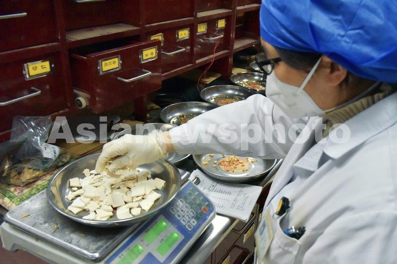 2022年12月22日,江苏省如皋市中医院中药房的中药师在抓取中药,调配中药方剂。