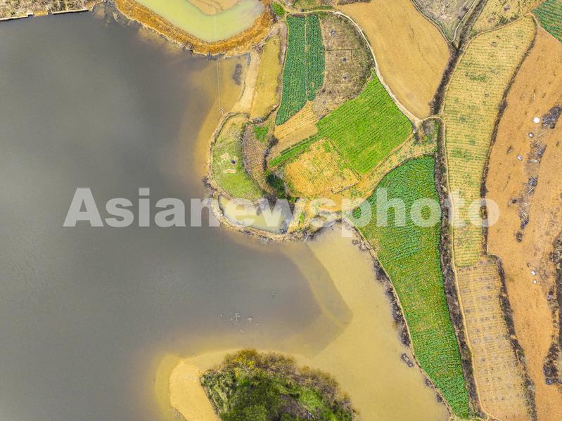 图片说明:2022年12月25日,航拍贵州省黔西市金碧镇新富村的一湖泊,属于水西柯海国家湿地公园的一个点。