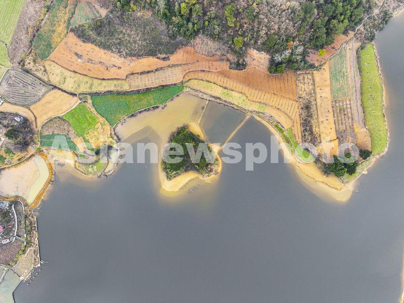 图片说明:2022年12月25日,航拍贵州省黔西市金碧镇新富村的一湖泊,属于水西柯海国家湿地公园的一个点。