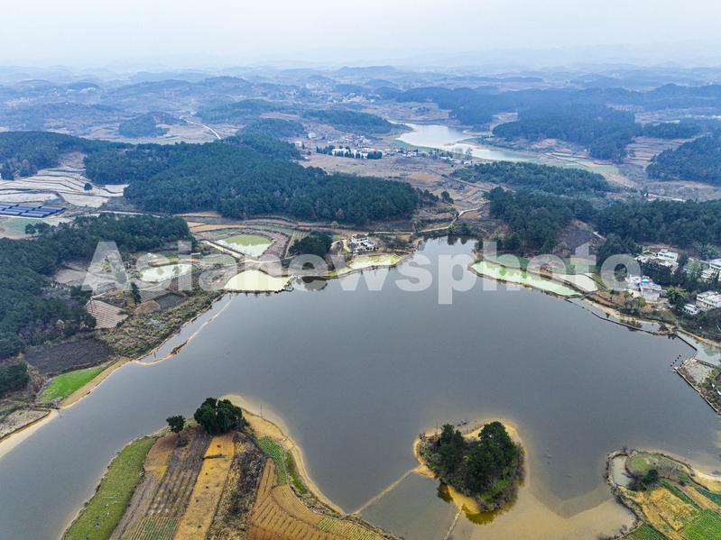 图片说明:2022年12月25日,航拍贵州省黔西市金碧镇新富村的一湖泊,属于水西柯海国家湿地公园的一个点。