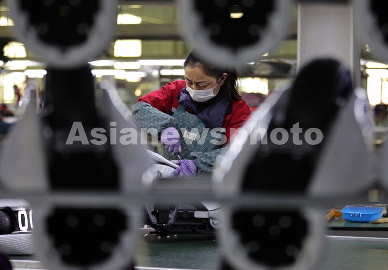 2022年12月26日,在位于河北省邢台市广宗县的贝多奇儿童玩具有限公司生产车间,工人在组装电动儿童玩具车。