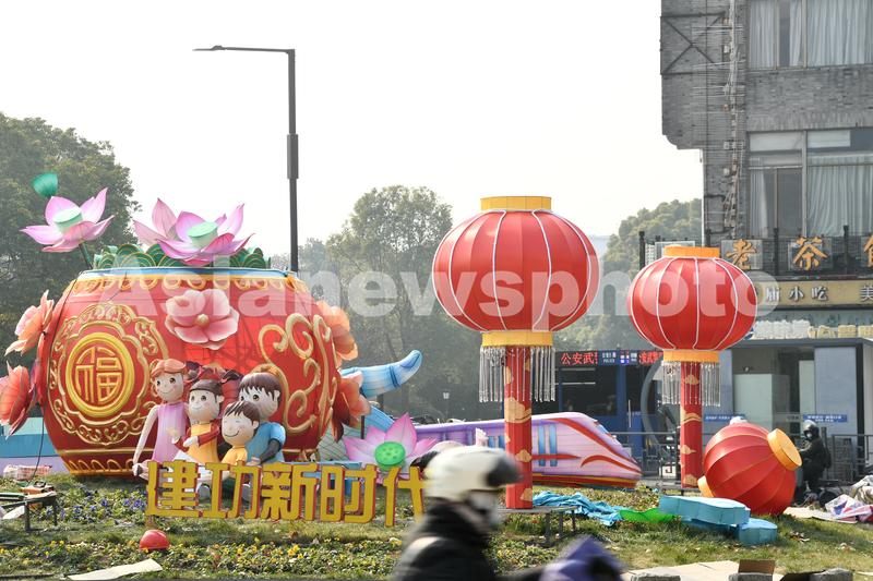 图片说明:2022年12月27日,市民从在南京夫子庙景区花灯旁经过。