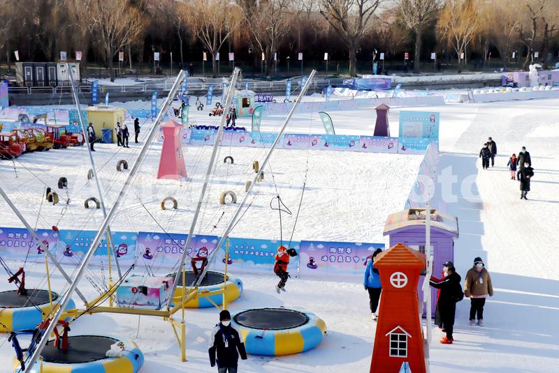 2022年12月28日,市民在陶然亭公园玩蹦蹦床。